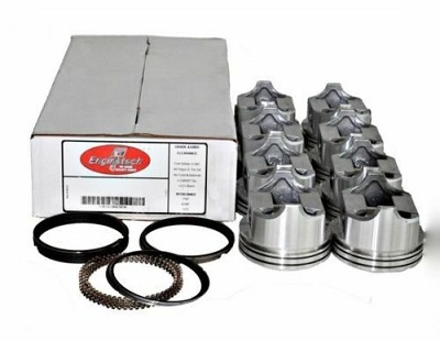 The right piston will save you time and money, and help you build a better engine. The rebuilder’s piston from Enginetech is just that. It meets or exceeds OEM standards of metallurgy and quality. Enginetech pistons have superior size and weight grading within each set for proper engine balance. Fitted wrist pins are cold forged for strength and grade fitted to each piston to assure proper pin to pin bore clearances. Pistons are diamond-turned rather than ground to assure exact size, precise skirt profile and superior finish which are critical to good scuff resistance during break-in and overall endurance.