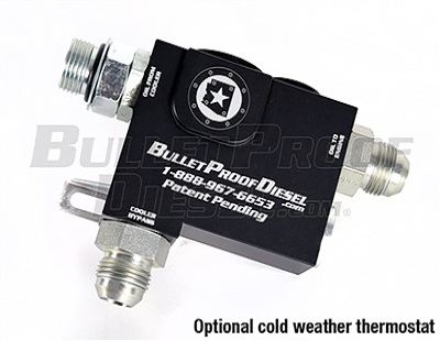 The Cold Weather Kit serves just like a coolant thermostat for the Bullet Proof Oil Cooler system. It is designed to allow your engine oil to warm up in cold weather climates before it circulates the oil through the air-to-oil cooler. Keep in mind, the Bullet Proof air-to-oil cooler is designed to work in hot summer climates like Phoenix, Arizona. This means that it will work exceedingly well in Alaska in January. Good rule of thumb? If you think you might need the cold weather kit, then you should buy it.