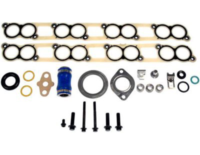 EGR Cooler Gasket Kit contains all the gaskets and O-Rings you need for a complete re-seal of the EGR Cooler. The kit may also be used for a variety of other automotive repairs, including intake manifold replacement and oil cooler service.