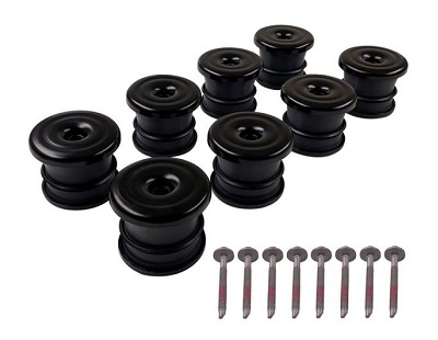 These bushings offer great vibration isolation and will not crack or breakdown like the OEM foam or rubber bushings. Also comes with corrosion resistant coated steel cups and bolts. Stock body mounts deteriorate over time and cost a fortune. Urethane mounts are hard and squeak. S&B’s Silicone Body Mounts have a smooth stock ride and last the life of your truck. The cap bushings have a distinct boss feature on it that matches the slot on the mounting tabs. They are designed to key into the frame tab and give it an OEM fit.