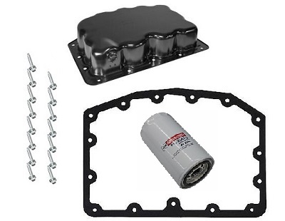 Replace your plastic oil pan with our upgraded metal oil pan kit.