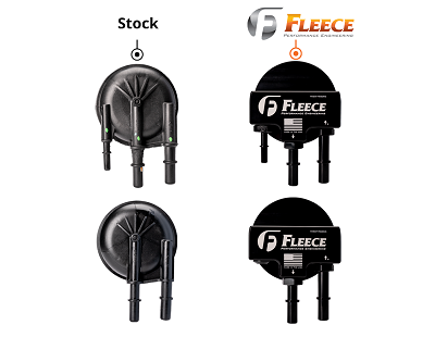 All New Fleece Performance replacement under hood filter assembly for the Ford 6.7L Powerstroke! The plastic OE filters are prone to cracking and fuel leakage – eliminate the risk of a cracked filter with our billet aluminum cap assembly and billet aluminum quick disconnect fittings. Our drop-in replacement filter assembly locks directly into the stock filter location and utilizes a replaceable spin-on Donaldson filter that is easily serviceable. The kit includes an extra Donaldson fuel filter, further extending the time before you need to purchase an additional filter.