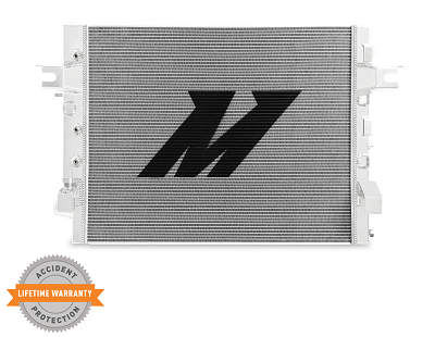 The legendary reliability and power of the 6.7L Cummins equipped Dodge Ram has solidified it as one of the most popular trucks in the world for getting work done. But every legend has its weakness, and for the Dodge Ram, the stock radiator is one of them. The plastic end tanks of the stock Ram radiator are prone to cracking and leaks over time. Add the increased stress and heat created by power-adding modifications and you have a recipe for disaster. But that’s where Mishimoto can help. Our new 2013+ Ram 2500 / 3500 radiator is the ideal upgrade for any workhorse Cummins powered Ram. With a fully aluminum, TIG-welded construction, this radiator is built as tough as your truck. A 63% increase in coolant capacity, and 41% larger surface area mean you can pile on the power and never worry about the heat. As with all of our products, this radiator is backed up by Mishimoto’s Lifetime Warranty.